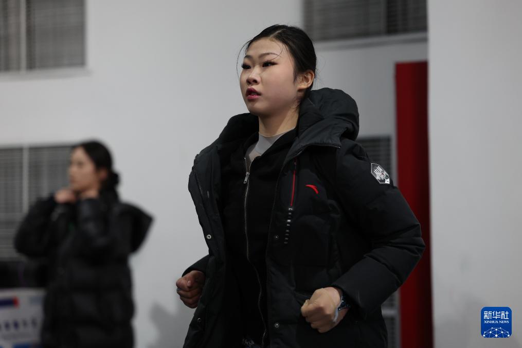 1月18日,北京市冬季运动管理中心选手安香怡在比赛前热身。她以60.16分的成绩暂列第五位。